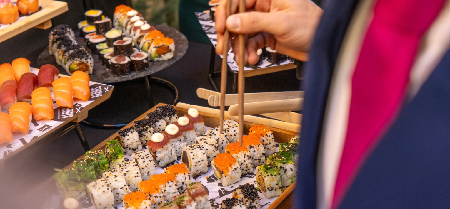 Lo ideal es contactar con varios meses de margen, sobre todo si buscas un catering de sushi para bodas o fechas clave de eventos de empresa. Así te aseguramos nuestra disponibilidad… ¡y que todo salga redondo!